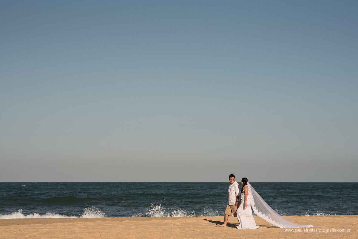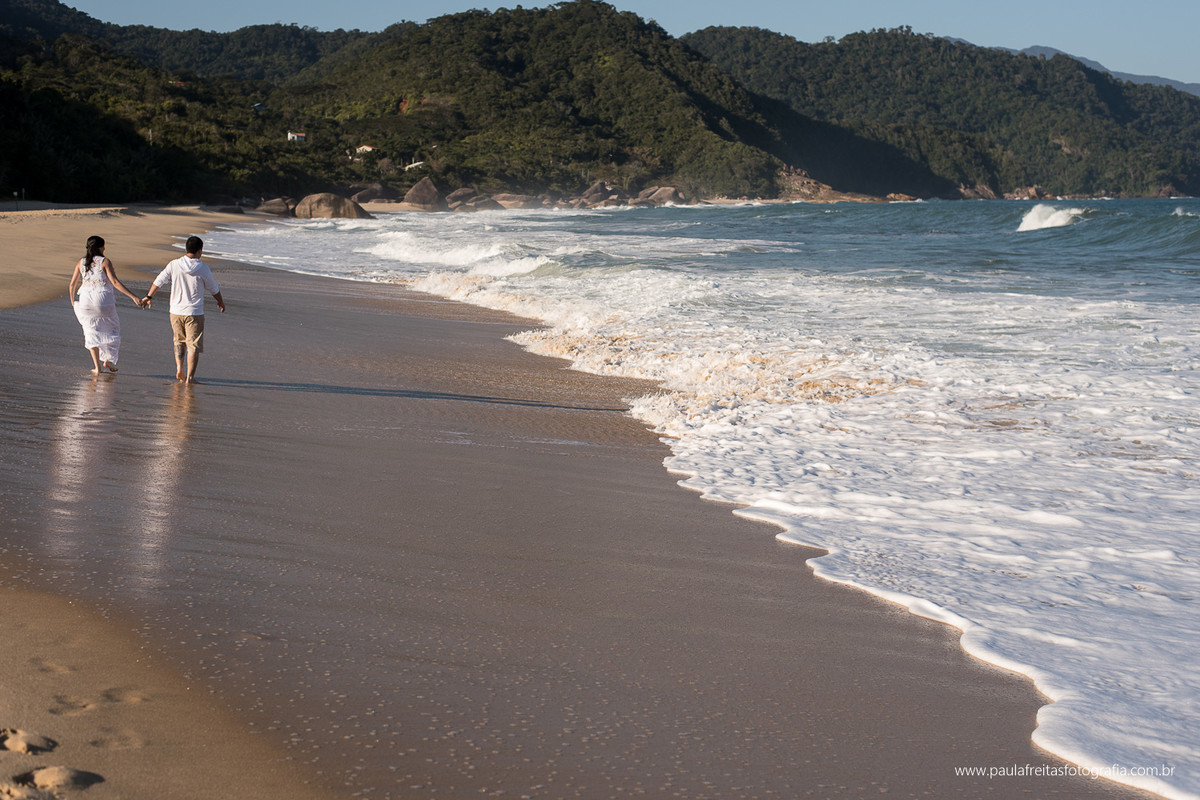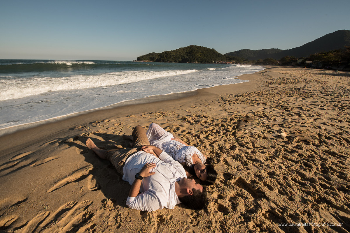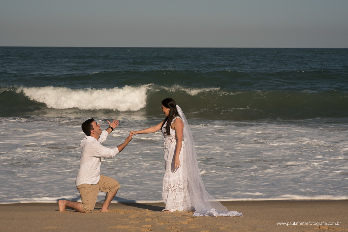 Num dia de inverno, na praia, nós voltamos ao local do pedido de casamento. Aham, foi na praia, de um jeitinho especial e cheio de encanto, incrível!