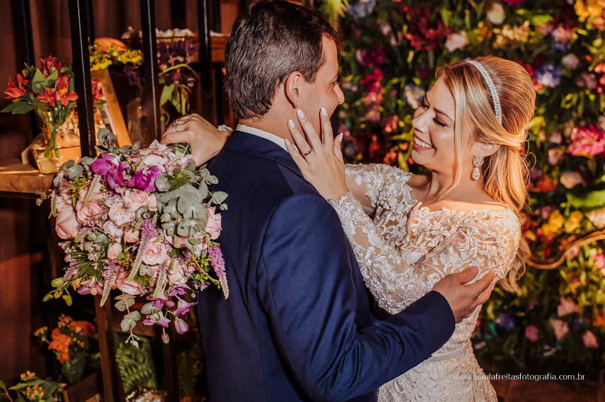 O casamento foi bem a carinha deles, num estilo bem clássico, bem detalhista.