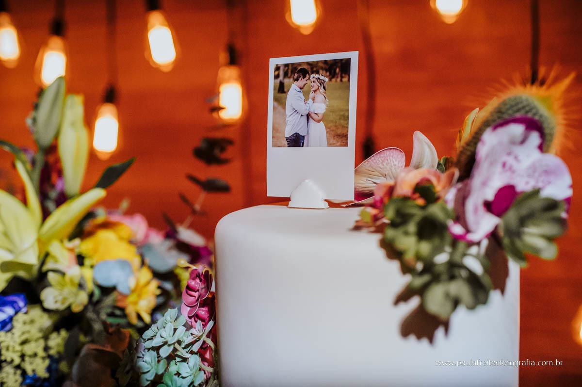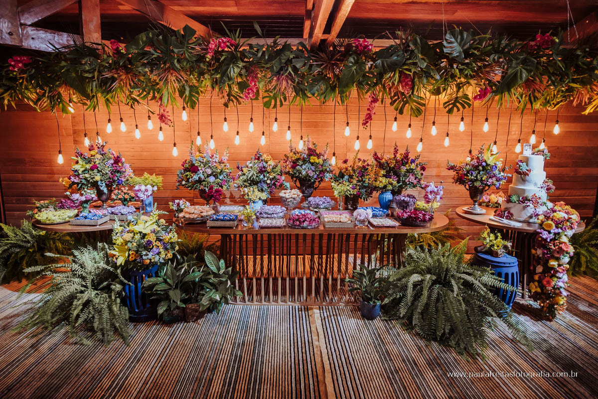Toda a decoração foi colorida e cheias de flores, um charme.
