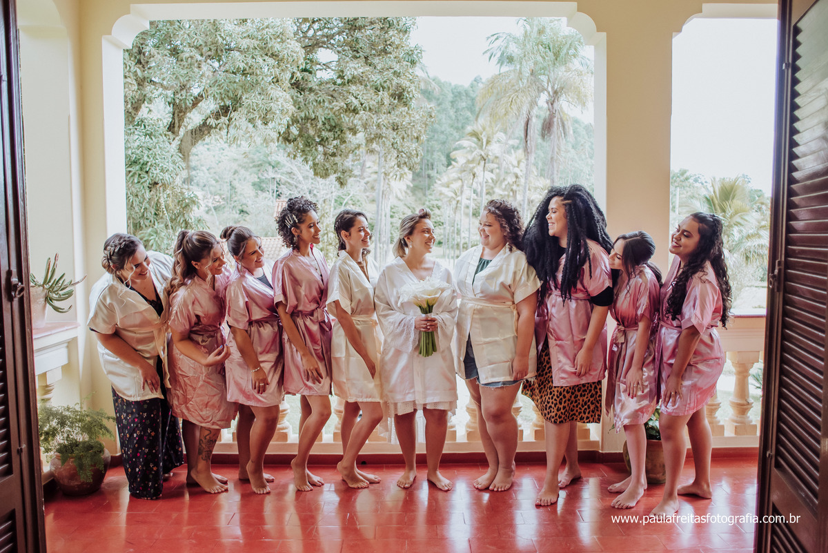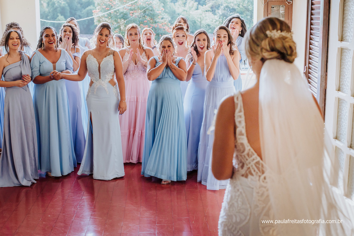 Quando a Yully ficou pronta ela fez o First look com as madrinhas, foi uma emoção e tanto.