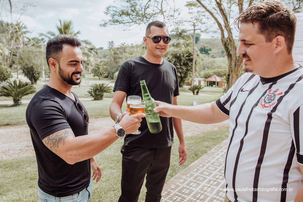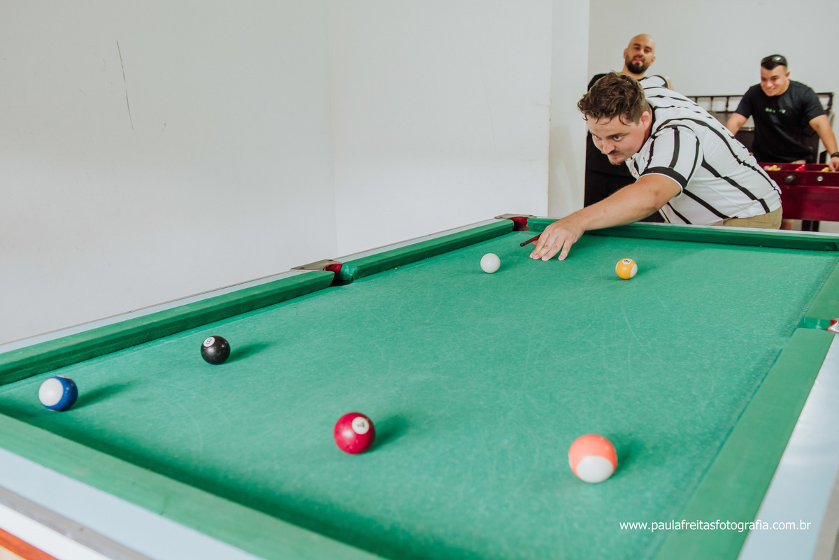 O making of do noivo foi do jeito que ele gosta juntos com os padrinhos, jogando uma sinuca e bebendo uma cervejinha.