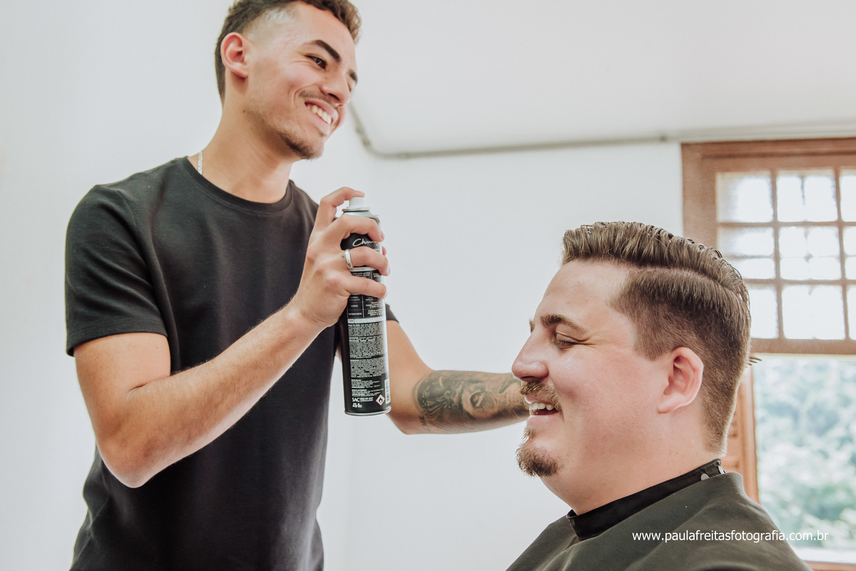 Os dois se arrumaram no local do casamento na Fazenda Marambaia, que lugar lindo, o dia estava espectacular.
