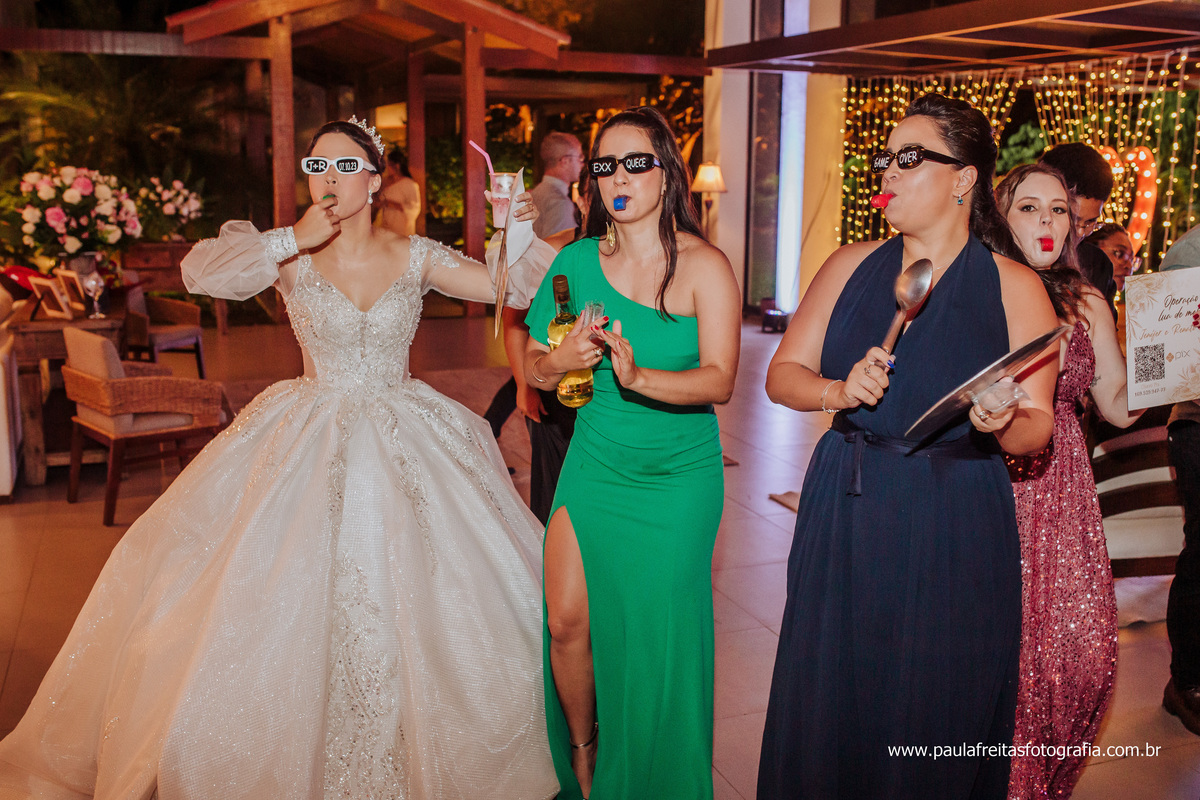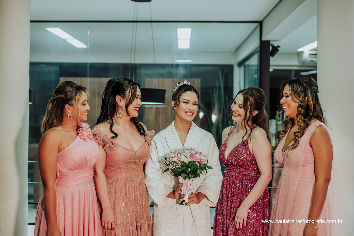 as madrinhas estavam alí conversando, a admirando, dando muitas risadas..