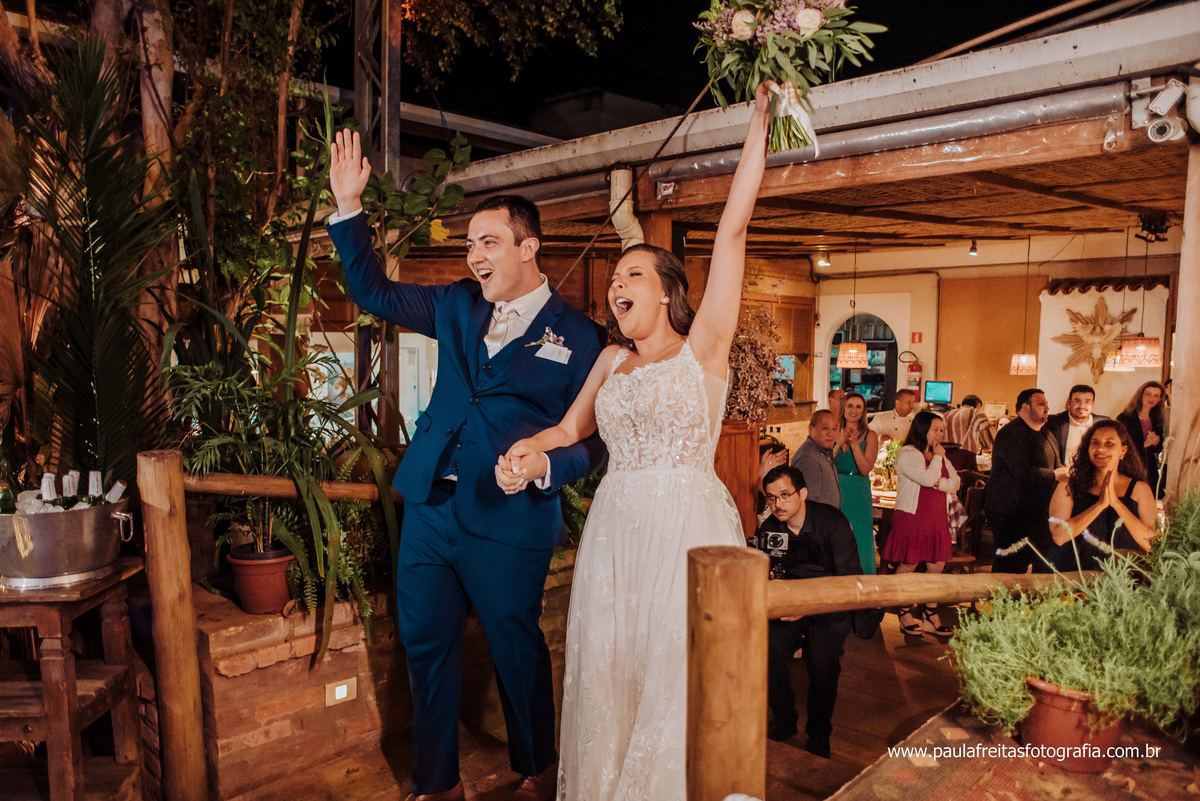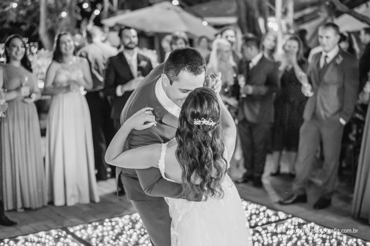 Teve dança dos noivos, convidados se divertindo, buquê voando,