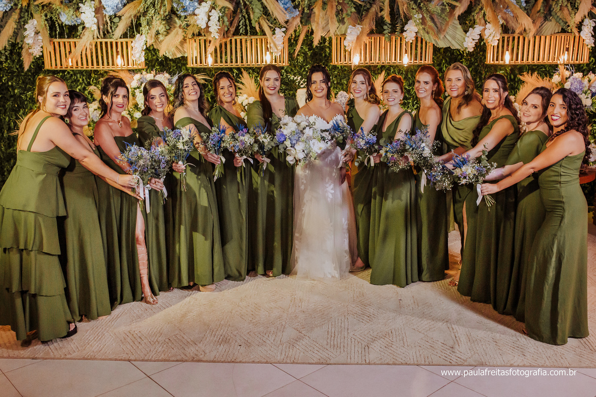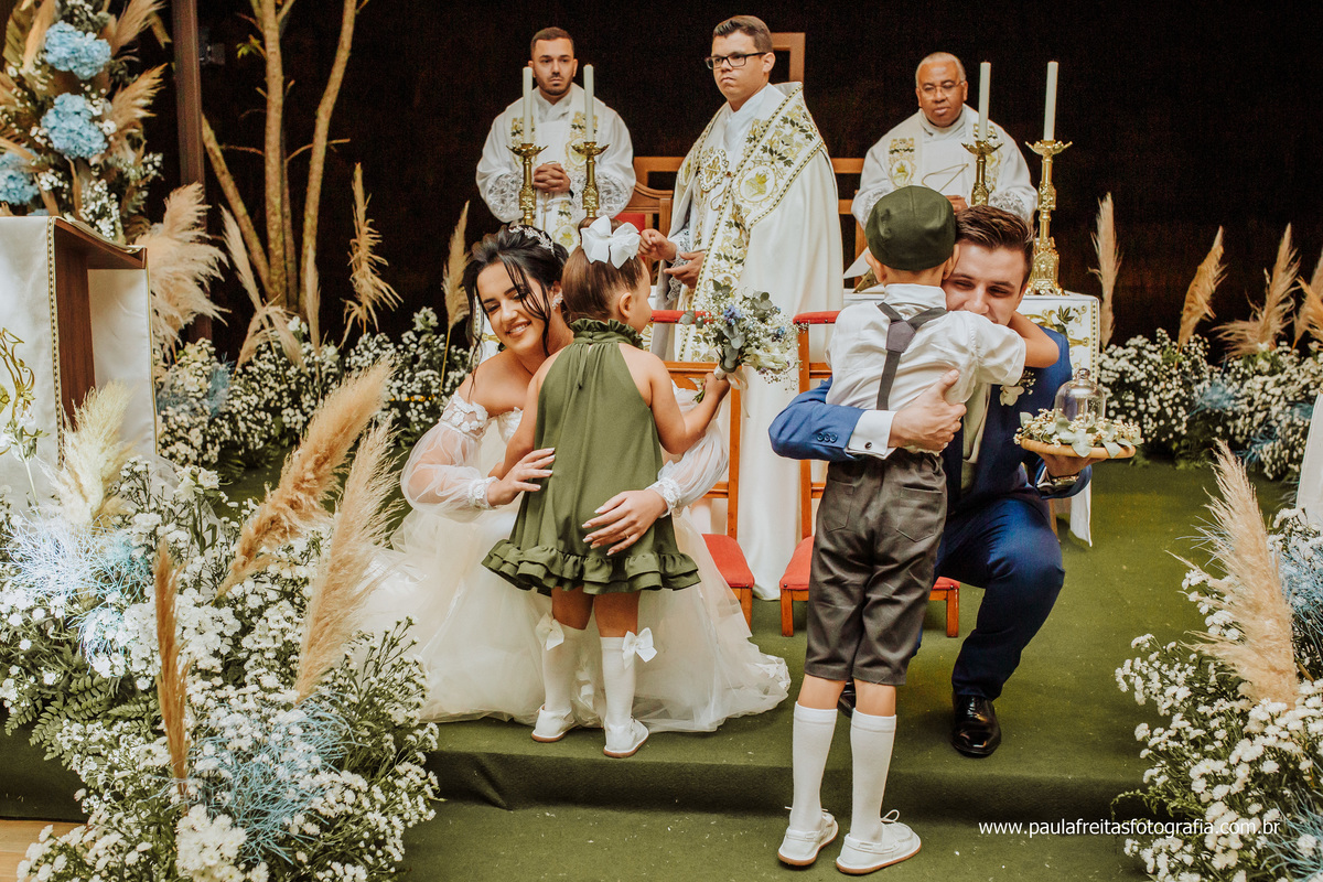e dos pajens, roupa das madrinhas, vestido da noiva, traje do noivo,