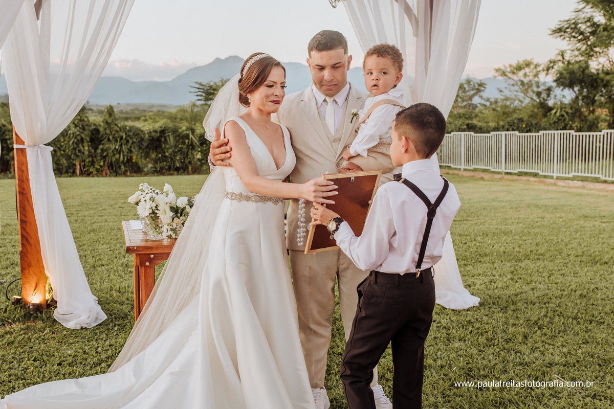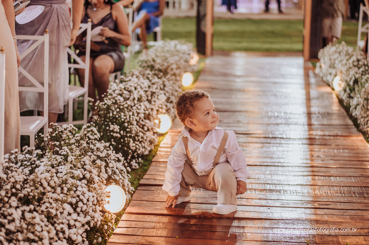 A Ana estava linda, o Thassio extremamente feliz e João aproveitou tudinho do casamento dos Pais.
