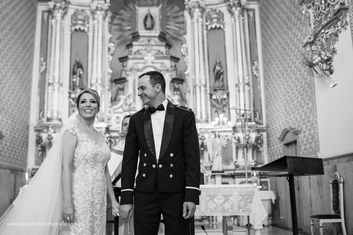 Na igreja o noivo recepcionava os convidados e então chega a hora de entrar, muita emoção e no altar, espera emocionado por sua futura esposa ♥