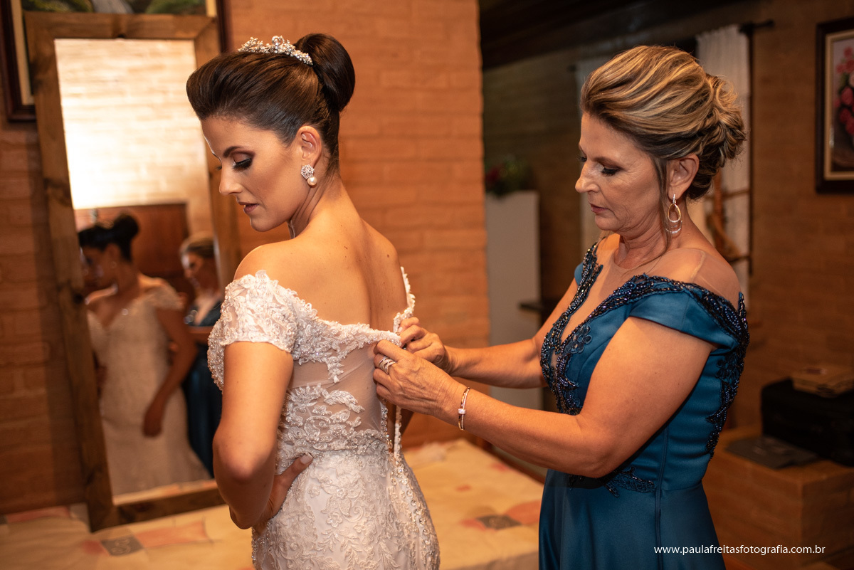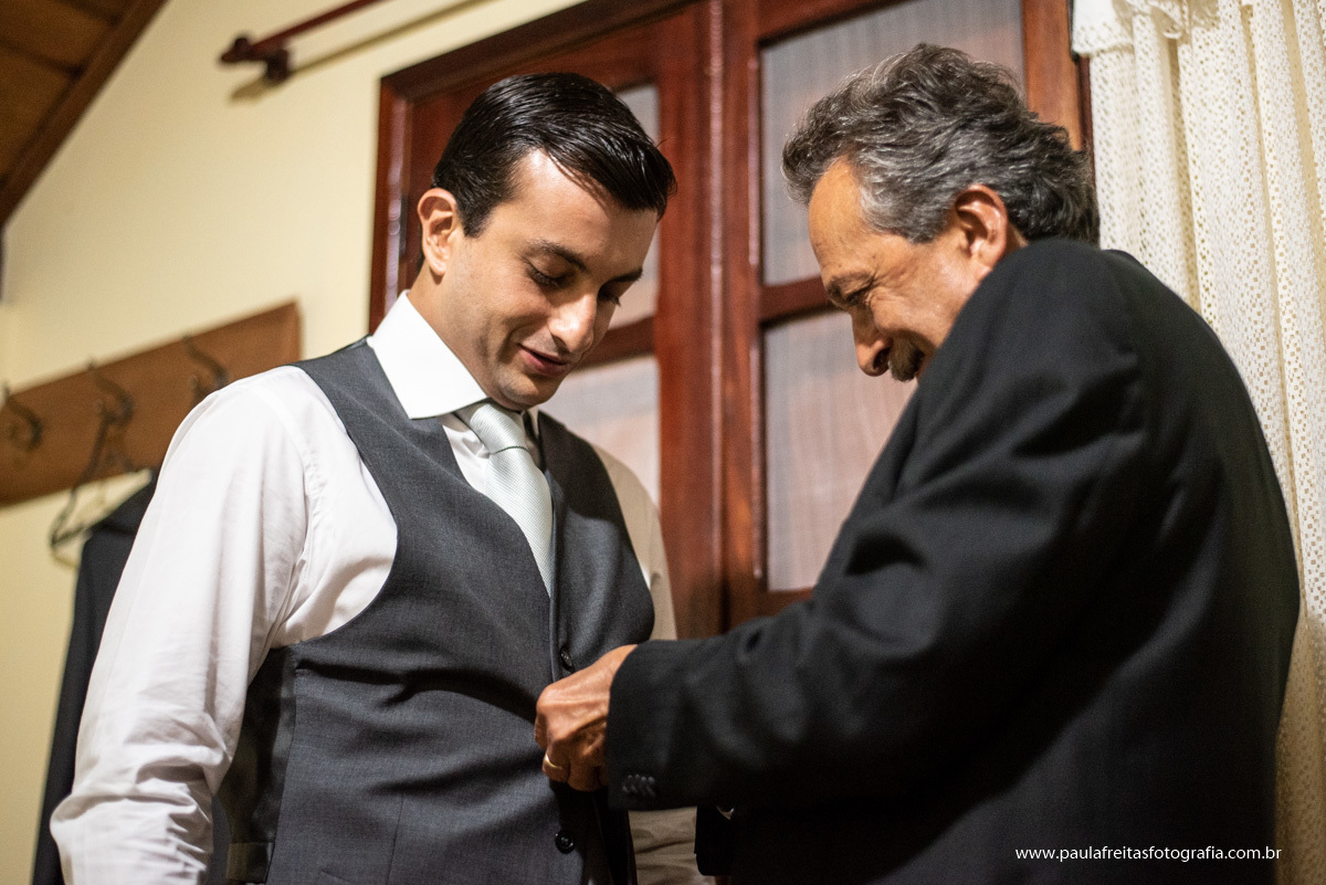 O making of dela e o making of dele, cada um em um chalé e tudo no mesmo local da cerimônia e da festa, ótimo! Os dois estavam tranquilos, em paz. Raíssa com as irmãs, mãe e sobrinha se arrumaram juntas enquanto o Léo estava com os pais, irmão e sobrinhos jogando o papo fora e aproveitando o entardecer.