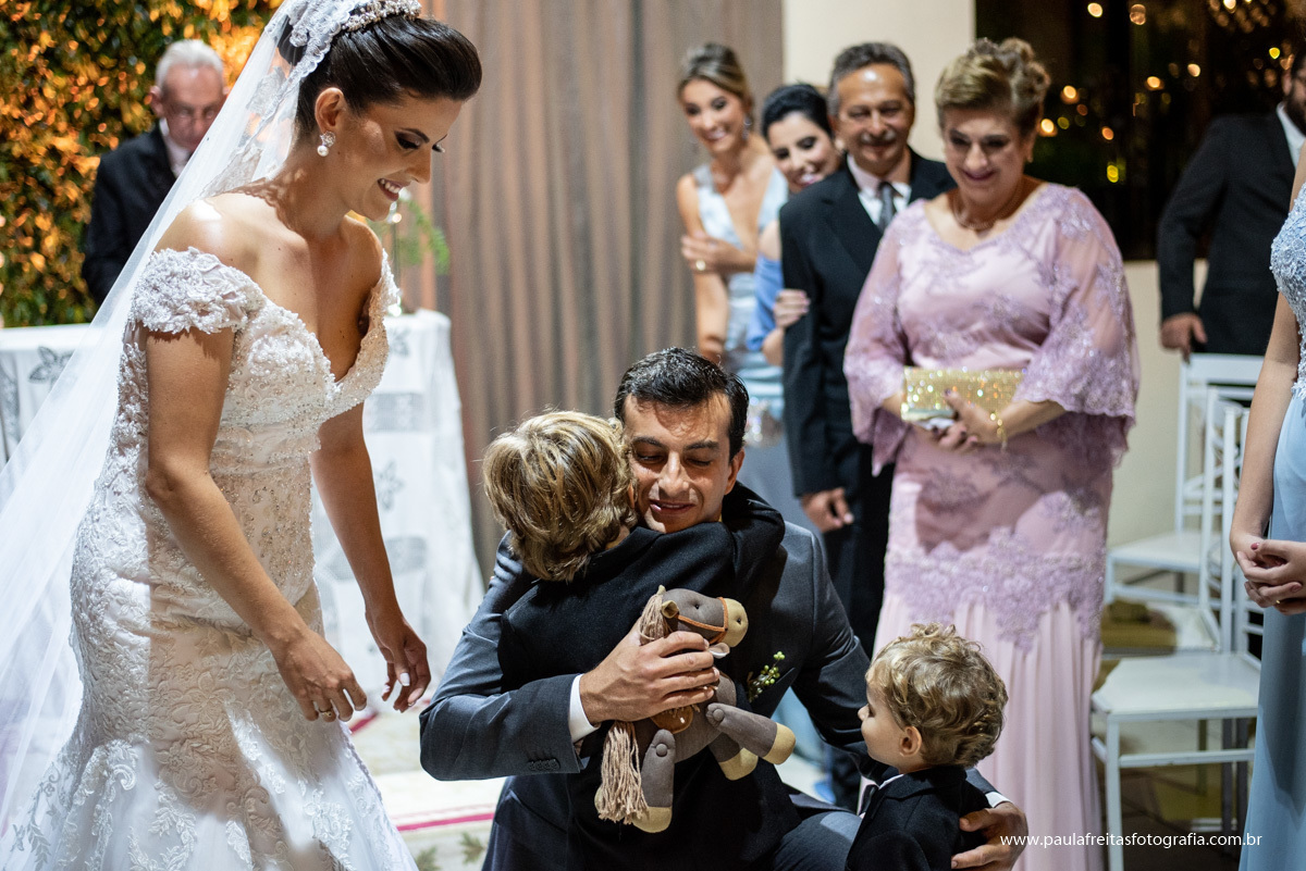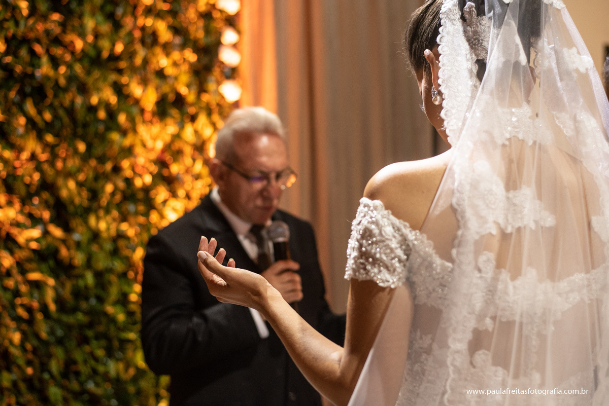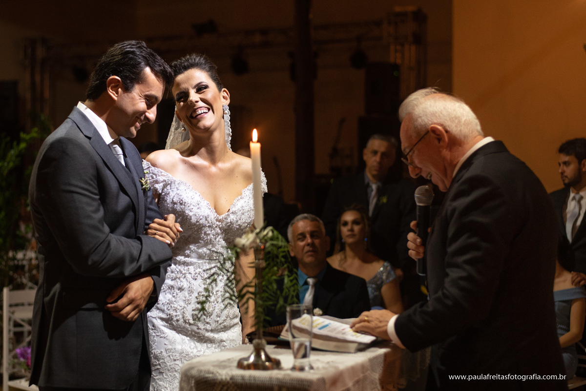 A cerimônia foi feita por um celebrante amigo, que cuidadosamente escolheu palavras lindas e especiais para que fossem ditas aos dois.