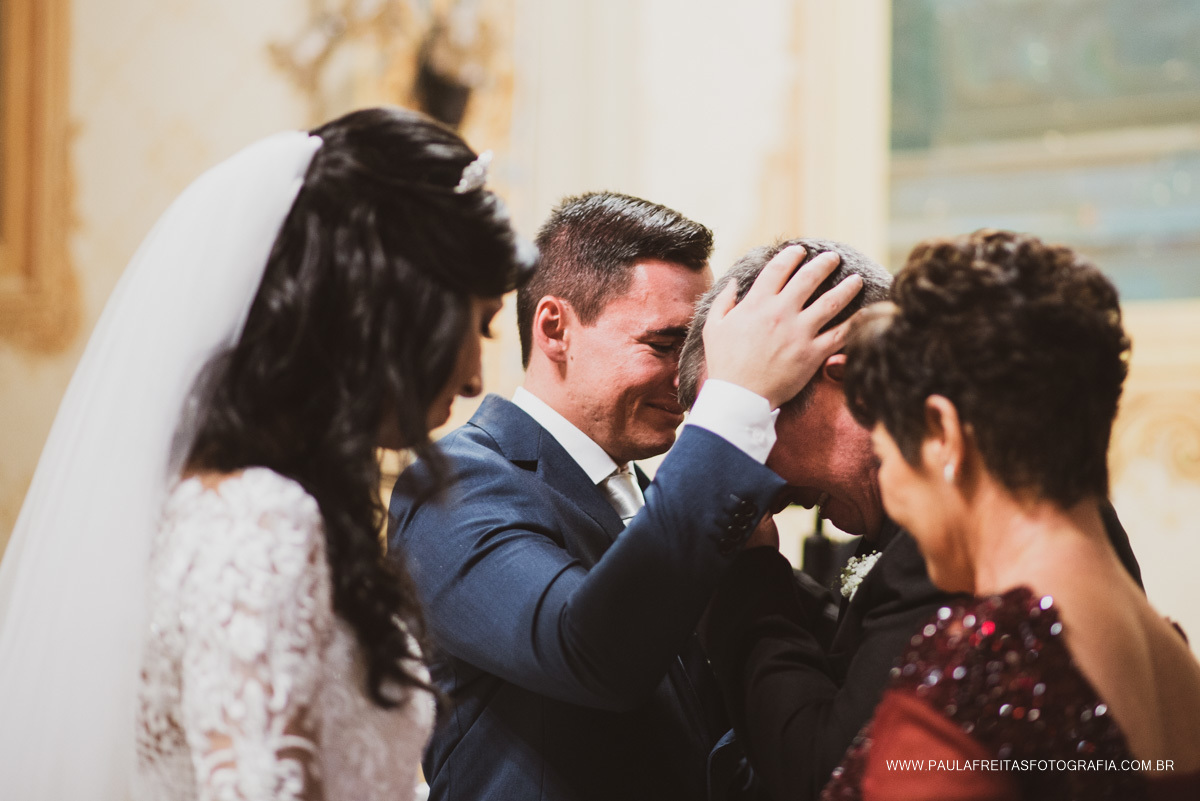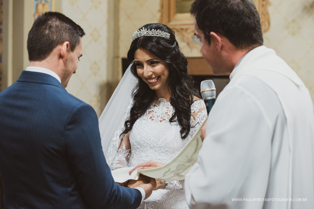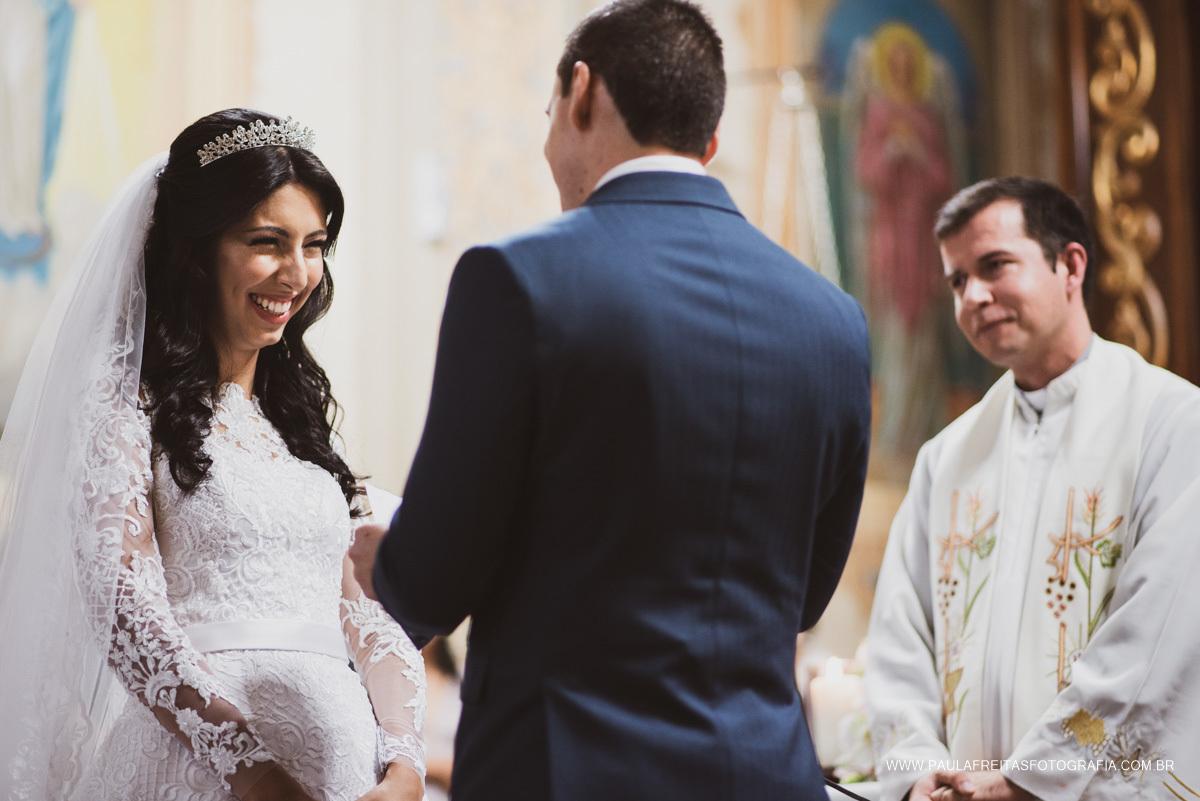 Foi tudo muito especial. O Padre escolhido a dedo, fez com que o Casamento fosse ainda mais emocionante e quando olhávamos os convidados pela igreja, a maioria de olhos estalados no altar, aproveitando cada palavrinha de ensinamentos, amor e carinho para Larissa e Bruno.