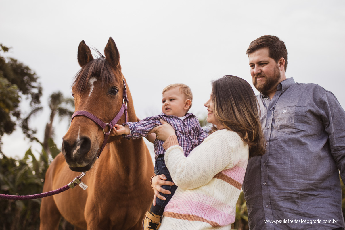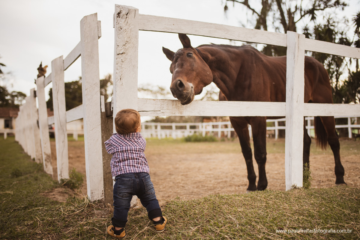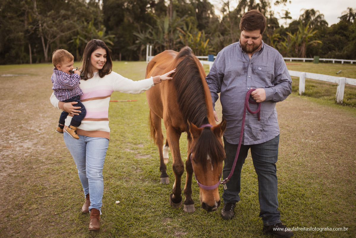 Mamãe e papai decidiram fazer em um local que ele adora: ao ar livre, perto dos cavalos ♥